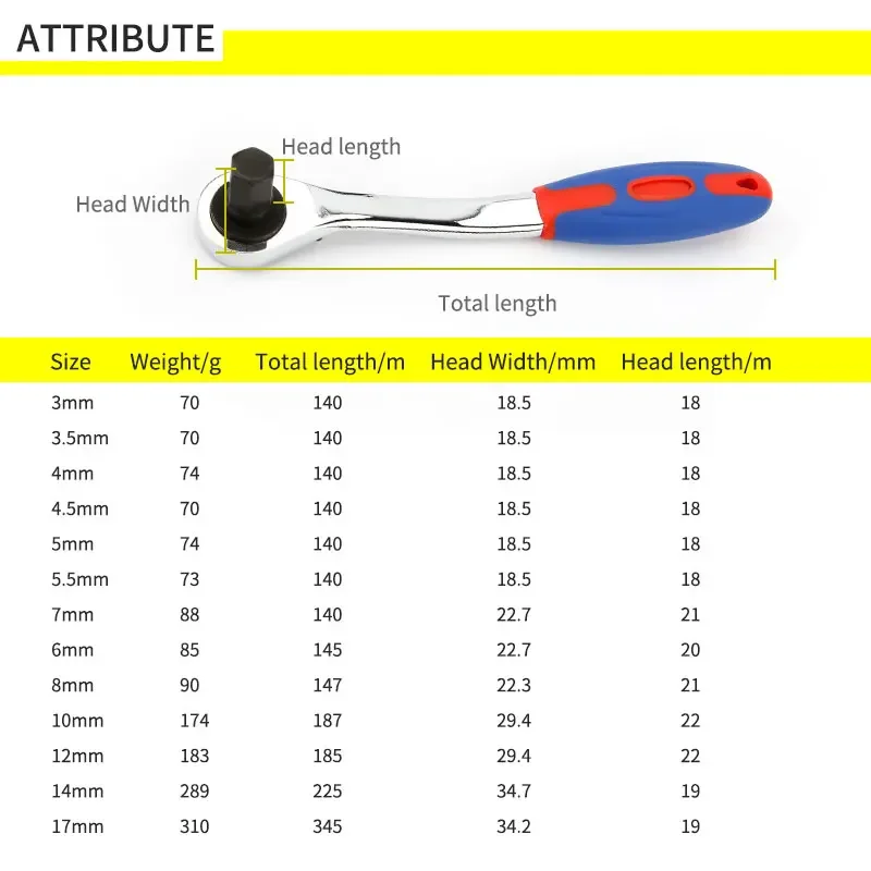 Ratcheting Hex Bolt Spanner with Soft Rubber Handle